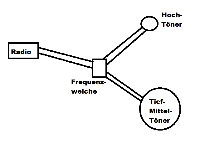 Da Fiat sehr spezifische Lautsprecheranschlüsse benutzt und ich keinen Adapter gefunden habe (Dies ist aber die sauberste Lösung) habe ich nur das Kabel vom Tieftöner getrennt, so dass beide Adern offen lagen.