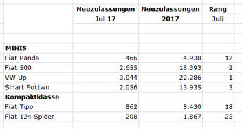 Neuzulassungen Juli 2017