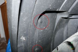 in meiner Anleitung steht, dass man, um die Klappe im Radkasten zu öffnen, die Schrauben herausdrehen soll. Da sind aber keine Schrauben, sondern Plastikstifte (siehe angehängtes Foto), die aus zwei Teilen (Kappe in der Mitte) zu bestehen scheinen.