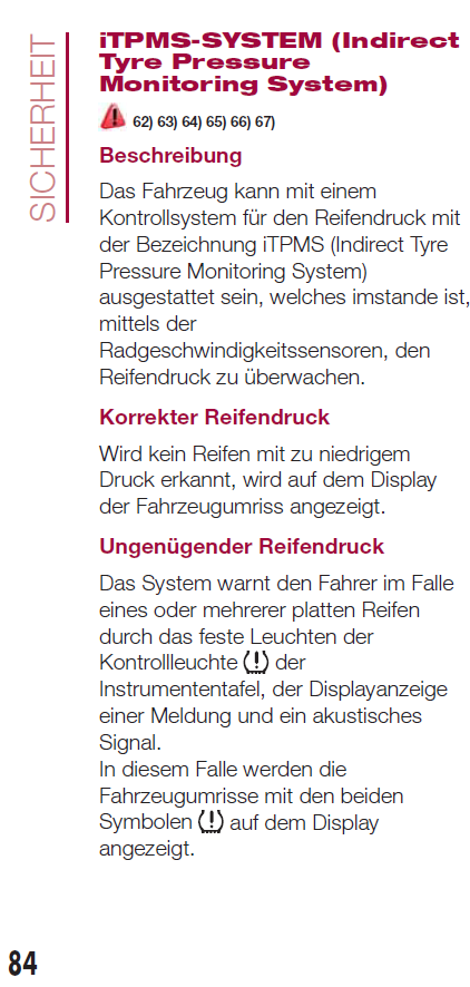 Im Handbuch steht natürlich auch das System für die Reifendruckkontrolle drin!