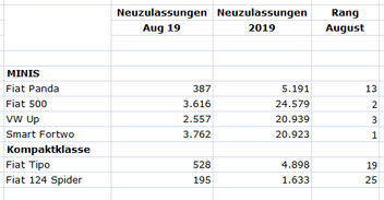 Fiat 500 mit einem Zuwachs gegenüber dem starken Vormonat von 13%!