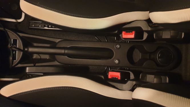 Die Schalter sind gut sichtbar und erreichbar zwischen den Sitzen zwischen Handbremse und Getränkehalter hinten.