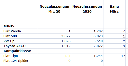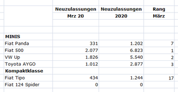 Der Fiat 500 verzeichnet einen Rückgang von 20% gegenüber dem Vormonat,
