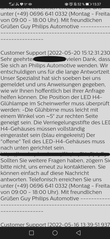 Ich bin auch mit Philips in Kontakt. Haben mir nach dem Telefonat eine Email geschickt und bitten um Bilder. Hab ich gestern fertig gemacht. Abwarten.