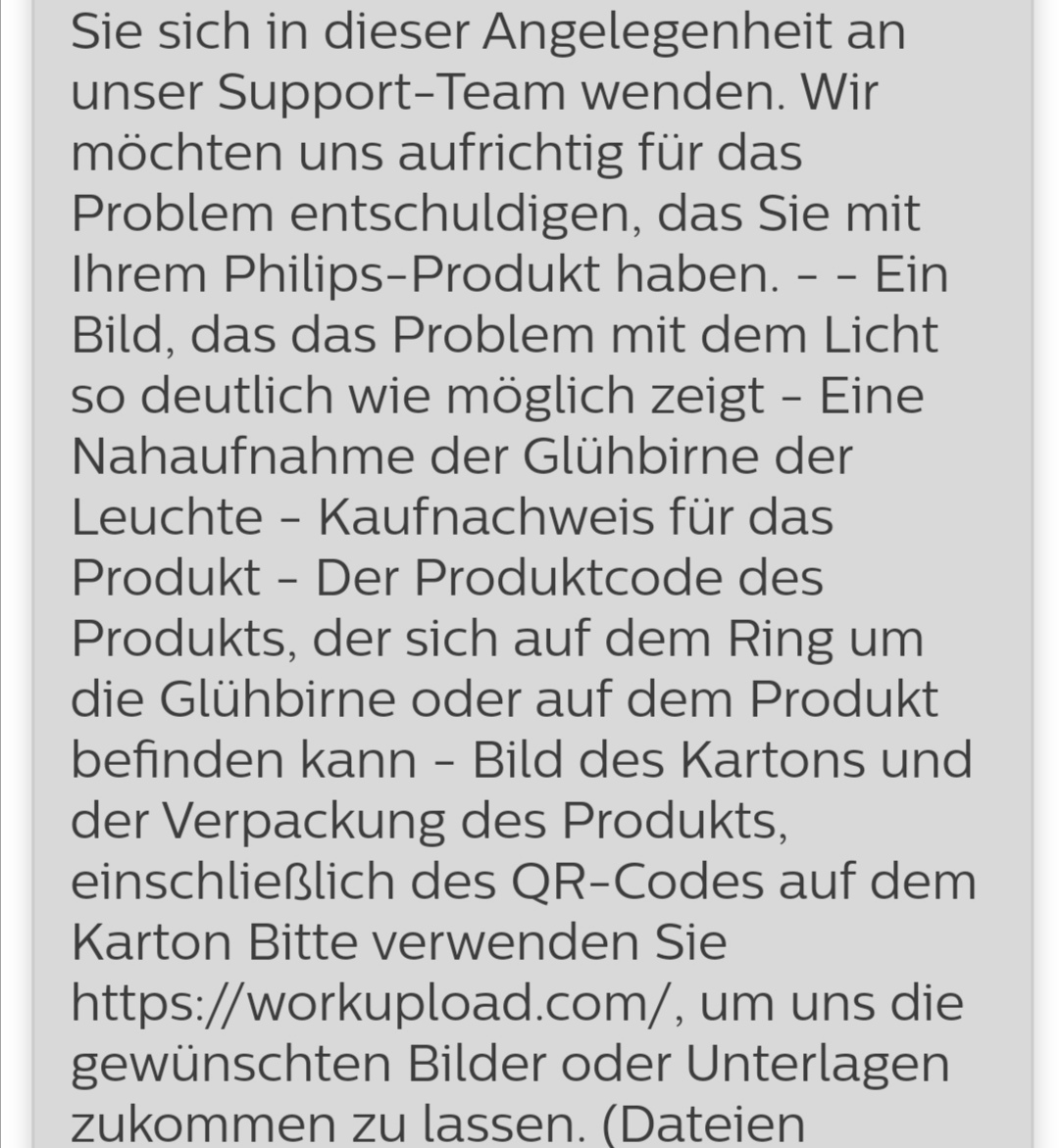 Ich bin auch mit Philips in Kontakt. Haben mir nach dem Telefonat eine Email geschickt und bitten um Bilder. Hab ich gestern fertig gemacht. Abwarten.