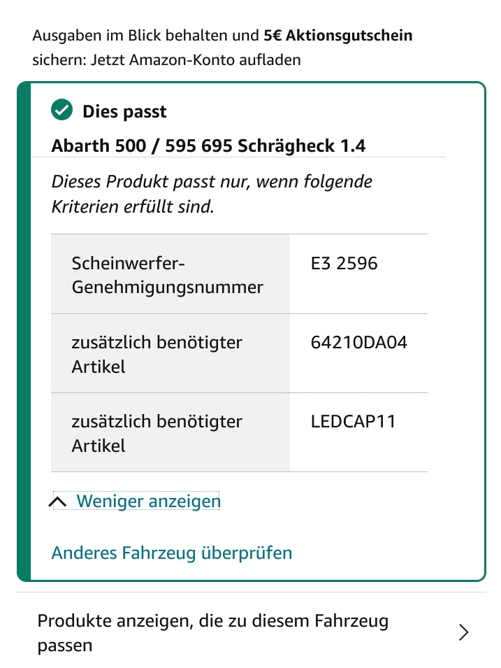 • Hallo........für Fiat 500 2007 - 2016 sowie Abarth modelle, gibt von Osram seit Juli 2023 H7 Led birne "offiziell" mit Straßezulassung, daher stehts, Umrüstung, nichts mehr im weg,