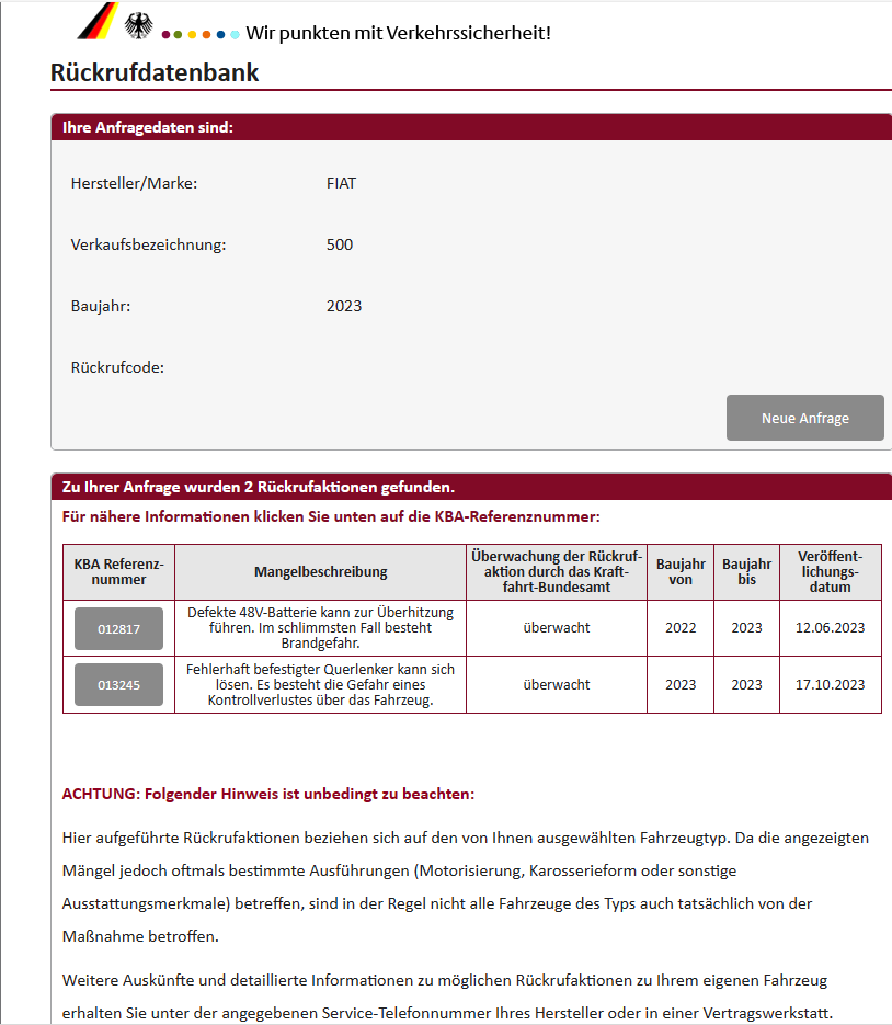 • Baujahr 2023 - Zeitraum 04.04. - 27.09.2023 können betroffren sein!