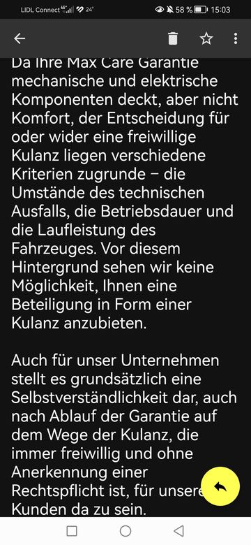 Dort sagte man mir, dass ich erweiterte Garantie bis 2026 habe, aber diese mir unter Umständen nicht gewährt wird, da ich die Inspektionen nicht bei