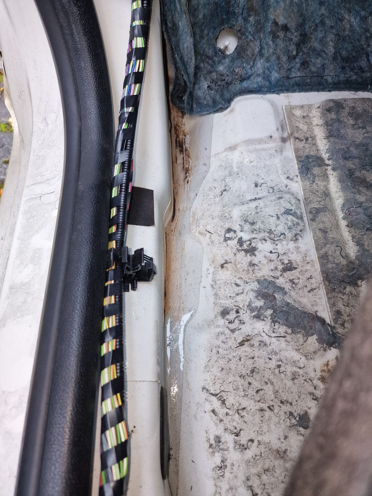 Beifahrerseite ist trocken. Der Ablauf unterhalb der Scheibenwischer Fahrerseite war verstopft, aber ist nun wieder frei. Daran lag es leider nicht.