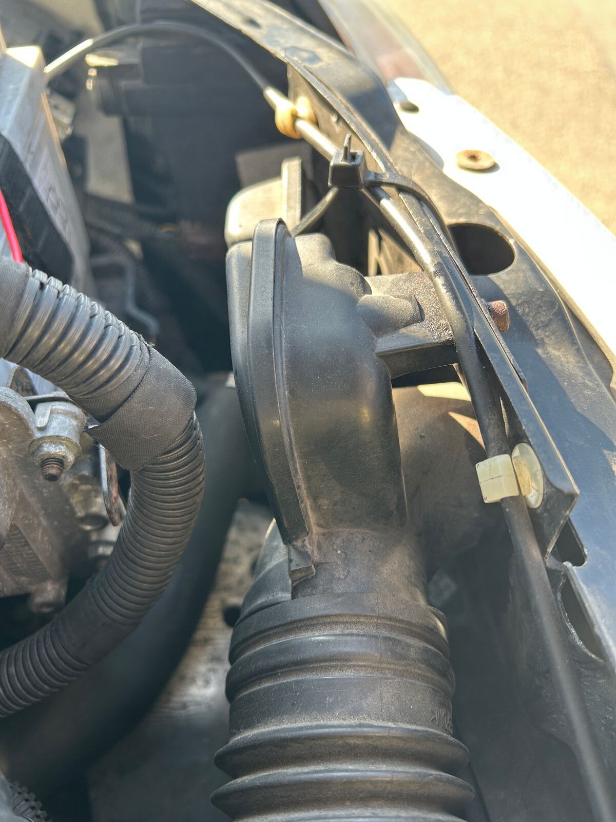 An diesem Bauteil dreht die Schraube durch und der Vorbesitzer hat das nur notdürftig mit Kabelbinder fixiert.