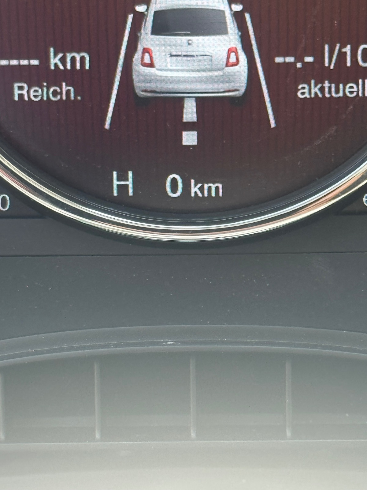 Stattdessen zeigt das Display ein großes „H“ und dahinter „0 km“ an.