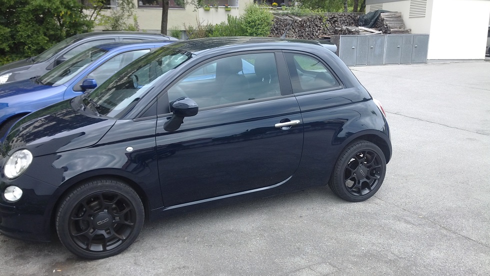 Mein Auto: Fiat 500, Lederausstattung, Nebelscheinwerfer, Panoramadach, PDC, Zierleisten an der Seite und auf der Motorhaube