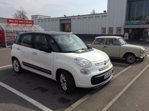 Nun aber zurück zum eigentlichen Thema, habe dann einen 500X stehen sehen der mir recht gut gefiel ich aber bald eine Herzbaracke bekam als ich den Preis sah. Das kam nicht in Frage und daneben stand ein weißer 500L den meine Tante paar Wochen davor schon Probe gefahren hat da sie nicht wusste ob ihr 16 Jahre alter Punto nochmal Tüv bekommt, was er aber schließlich doch tat.